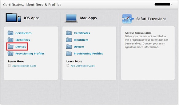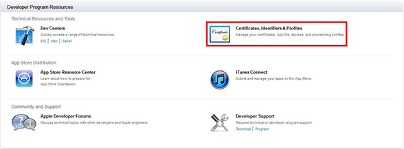 First you will need to register the device you will be using. Login to your Apple Developer account. Click on "Certificates, Identifiers & Profiles"
