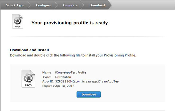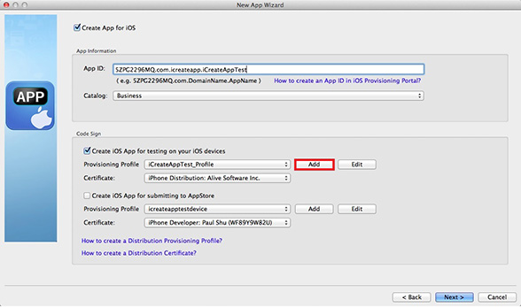 Now when you create your App you will need to import the Provisioning Profile you just created. Make sure you choose the same certificate.