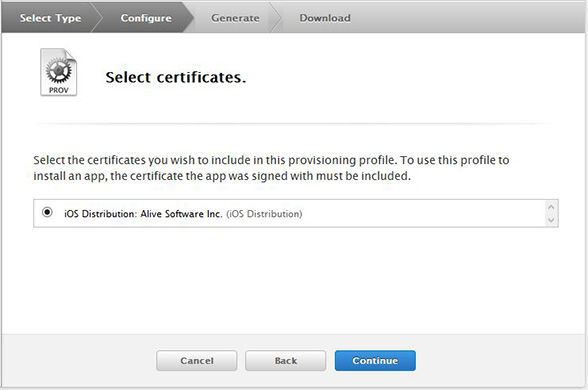 Next it will ask you to select the Certificates you wish to include for this profile.