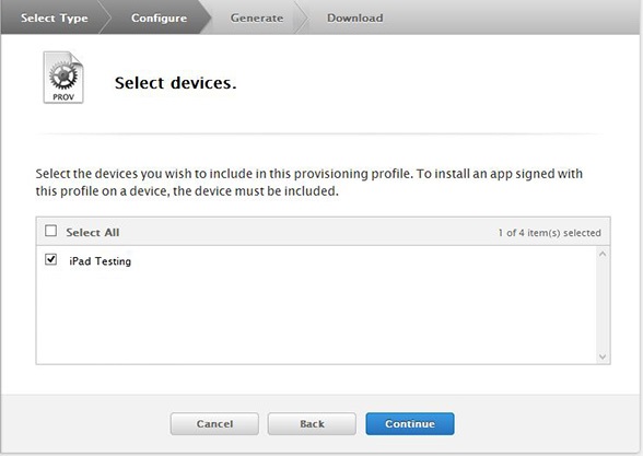 Next comes a very important part. You will be asked to choose the device you want to include. This is where you select the device you just registered at the beginning of this tutorial.