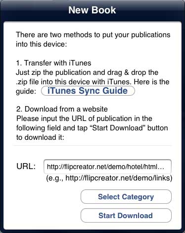 Just input the URL of publication you want to download and tap "Start Download". A thumbnail for this publication will be created on the Library interface and the download will be started immediately.