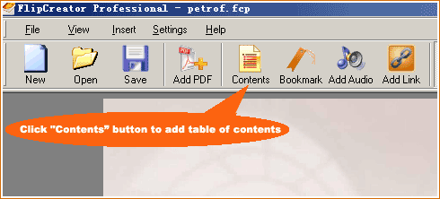 of FlipCreator is checked, all table of contents (bookmarks) will