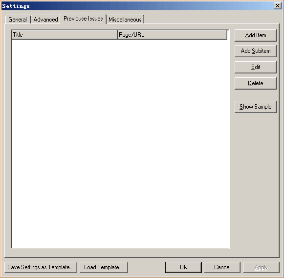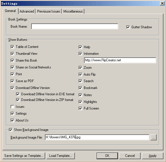window. There are several tabs: General, Advanced, Previous Issues